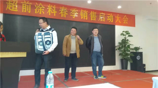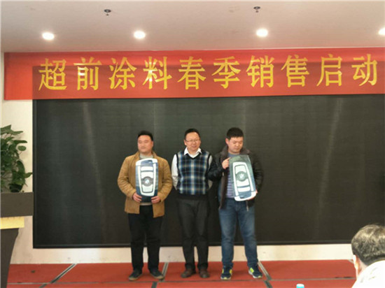 在過去的一年里,超前涂料里的每一位業(yè)務(wù)家人,就像一只只雄鷹,搏擊風(fēng)雨,翱翔蒼穹,創(chuàng)造佳績,跨越了一座座難以逾越的巔峰,在時(shí)間的長河里留下一個(gè)個(gè)美麗的剪影。在公司閻總的關(guān)心和領(lǐng)導(dǎo)下,在各部門的大力支持下,通過全體業(yè)務(wù)家人的共同努力,公司業(yè)務(wù)規(guī)模獲得了輝煌的發(fā)展。今天,在這啟動(dòng)大會(huì)上閻運(yùn)鋒閻總親自給四位優(yōu)秀業(yè)務(wù)家人送出了四輛寶馬作為獎(jiǎng)勵(lì)。